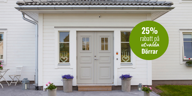 Just nu får du minst 35% på alla Fönster och fönsterdörrar och 25% rabatt på utvalda ytterdörrar.